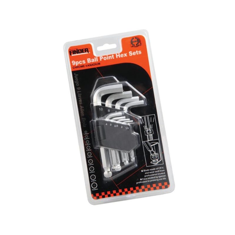 Κλειδιά Allen με σφαιρική κεφαλή – 9pcs – Finder – 193128