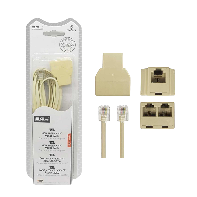 Καλώδιο γραμμής τηλεφώνου με διακλαδωτή – 6P4C1-2 – 5m – 097077