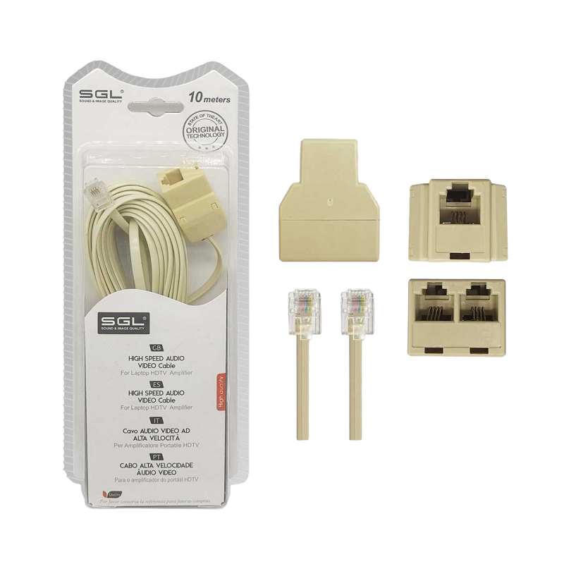 Καλώδιο γραμμής τηλεφώνου με διακλαδωτή – 6P4C1-2 – 10m – 097084