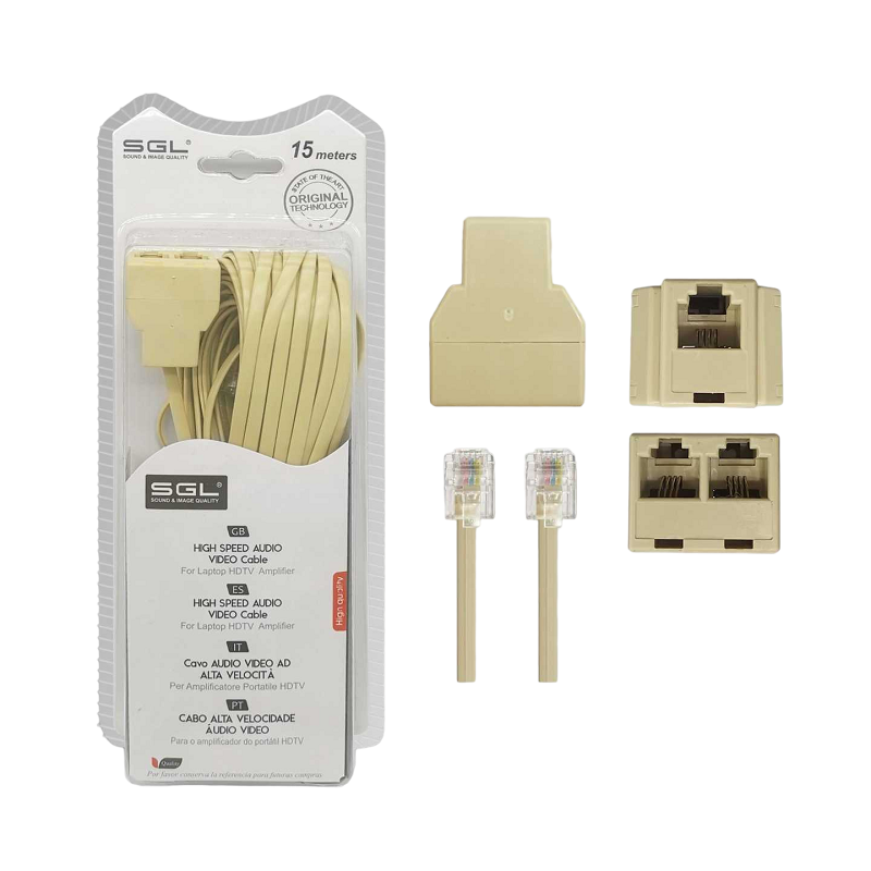 Καλώδιο γραμμής τηλεφώνου με διακλαδωτή – 6P4C1-2 – 15m – 097091