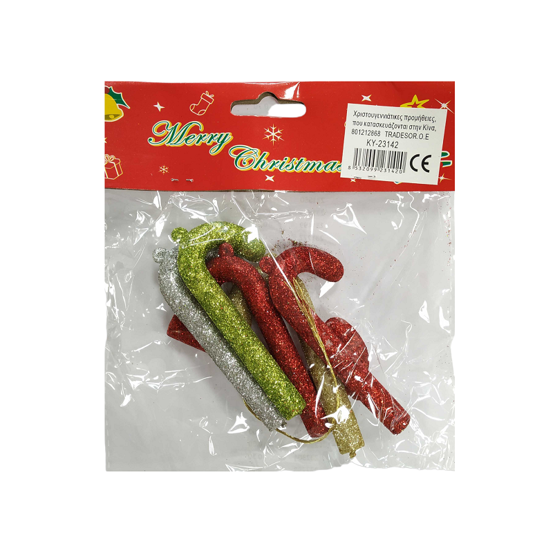 Σετ Χριστουγεννιάτικα στολίδια – Γλειφιτζόυρι μπαστουνάκι – 9cm – 6pcs – 231420