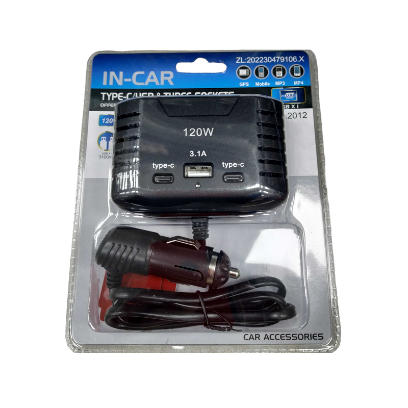 Πολύπριζο φόρτισης αναπτήρα αυτοκινήτου με 3 παροχές – USB+2Type-C – CD080460 – 804605